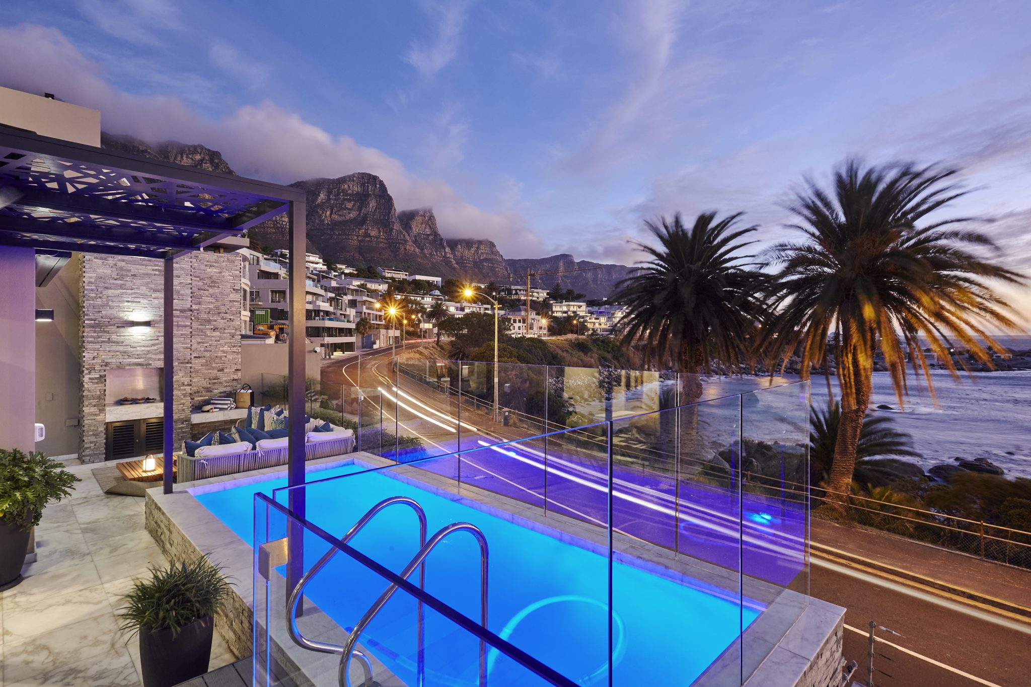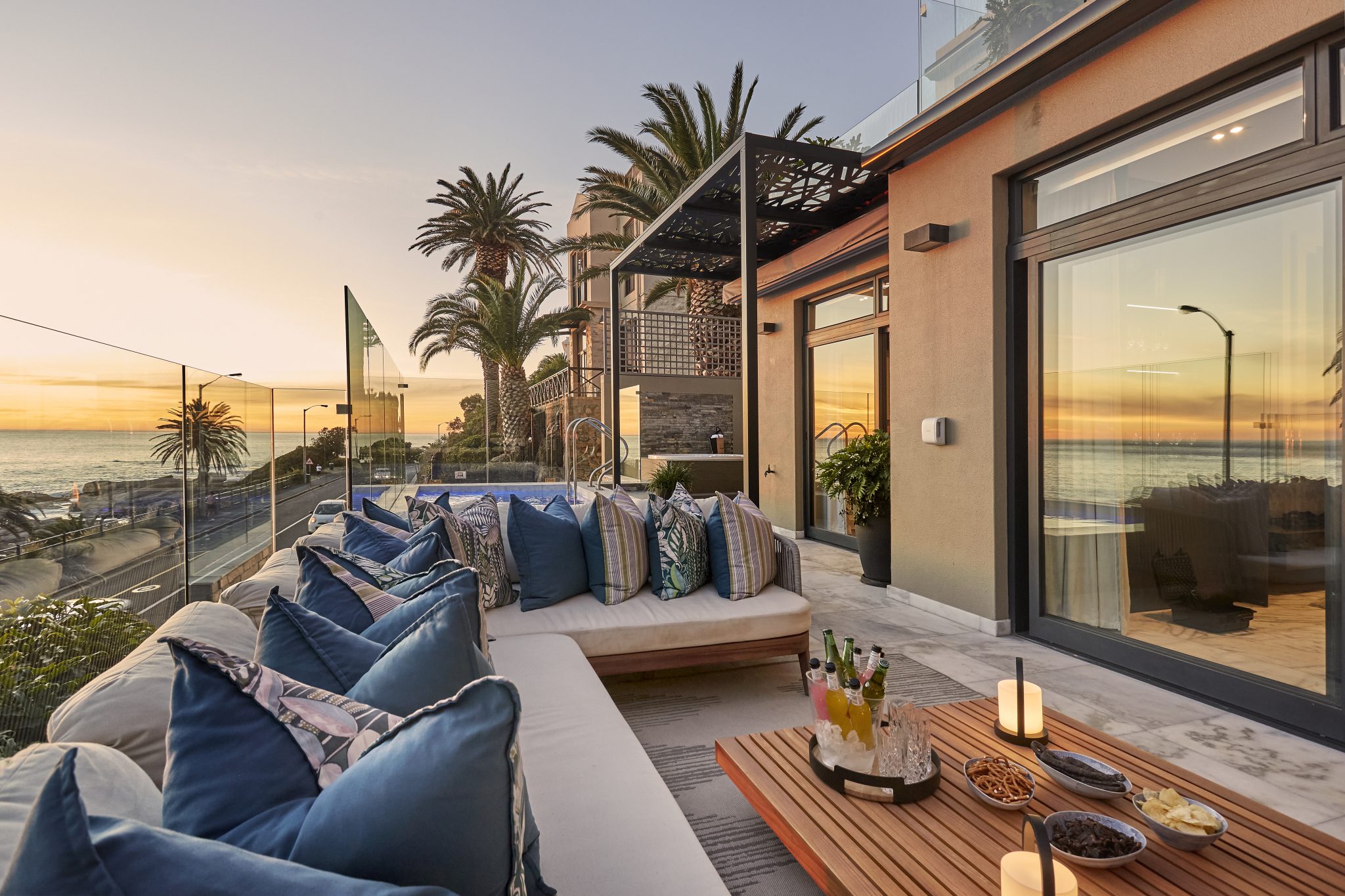 Bakoven Palms is a layered coastal sanctuary above the quiet curve of Barley Beach, just a short, level walk from the rhythm of Camps Bay. Set against the Atlantic, the villa unfolds across four sun-drenched terraces where indoor and outdoor living blend effortlessly. From the ocean-facing living spaces and chef’s kitchen to the heated pool, jacuzzi, and alfresco dining decks, every level is shaped by light, sea air, and unforgettable sunsets.