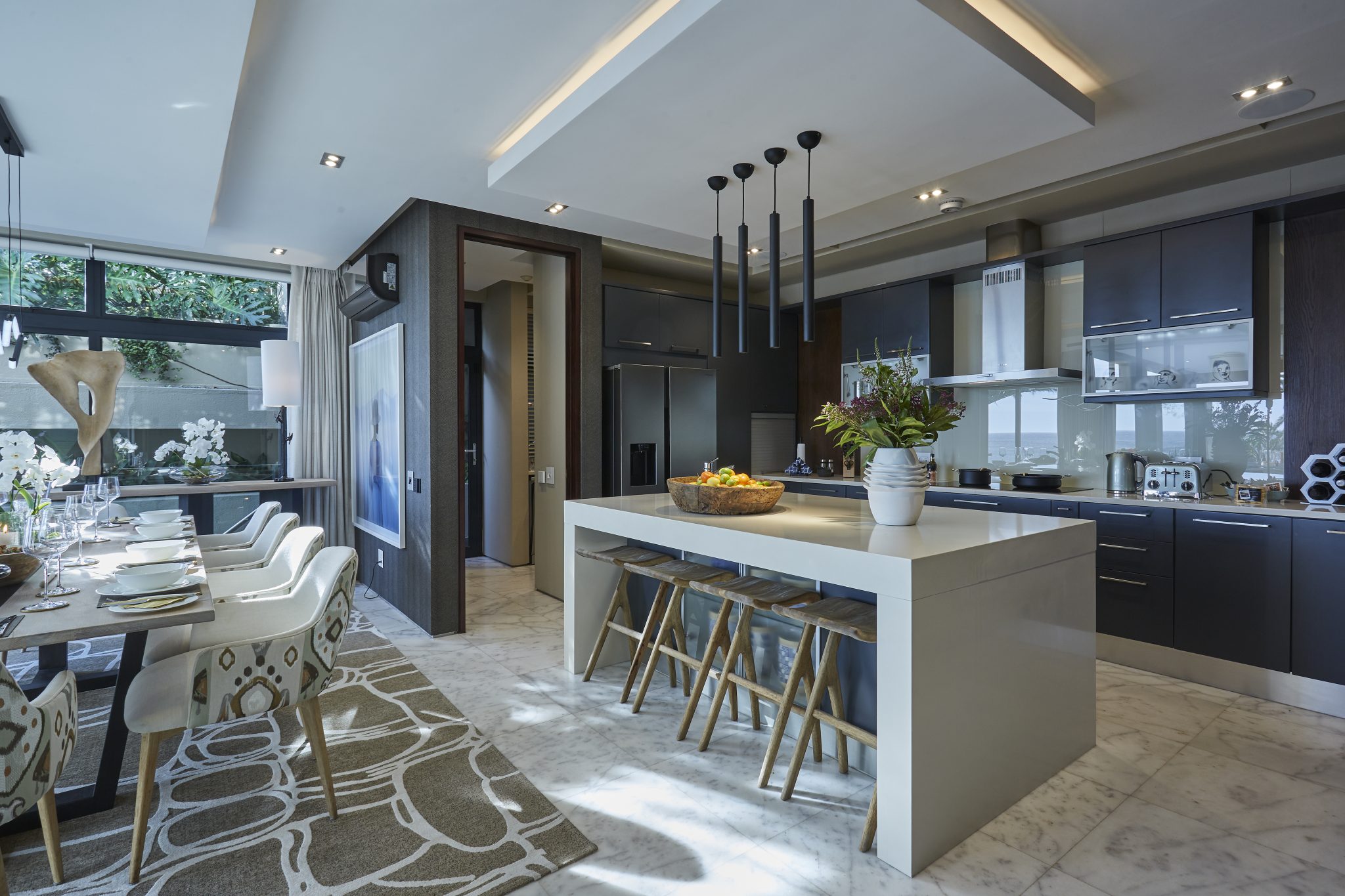 Bakoven Palms is a four-bedroom, multi-level coastal villa perched above Barley Beach, offering sweeping views of the Atlantic Ocean and Lion’s Head. Designed by a Cape Town design studio, the home blends refined modern interiors with seamless indoor–outdoor living. With lift access to all floors, a heated pool and jacuzzi, private gym, and seven bathrooms, the villa is curated for absolute comfort, ease, and performance.