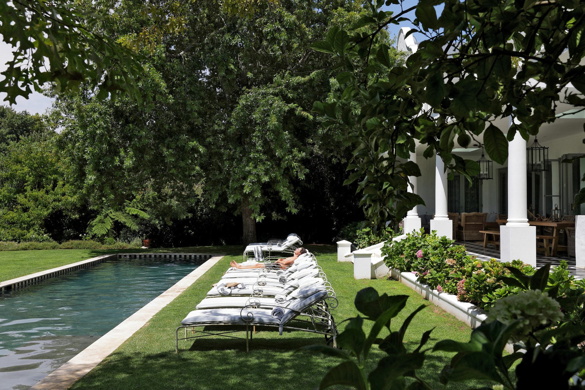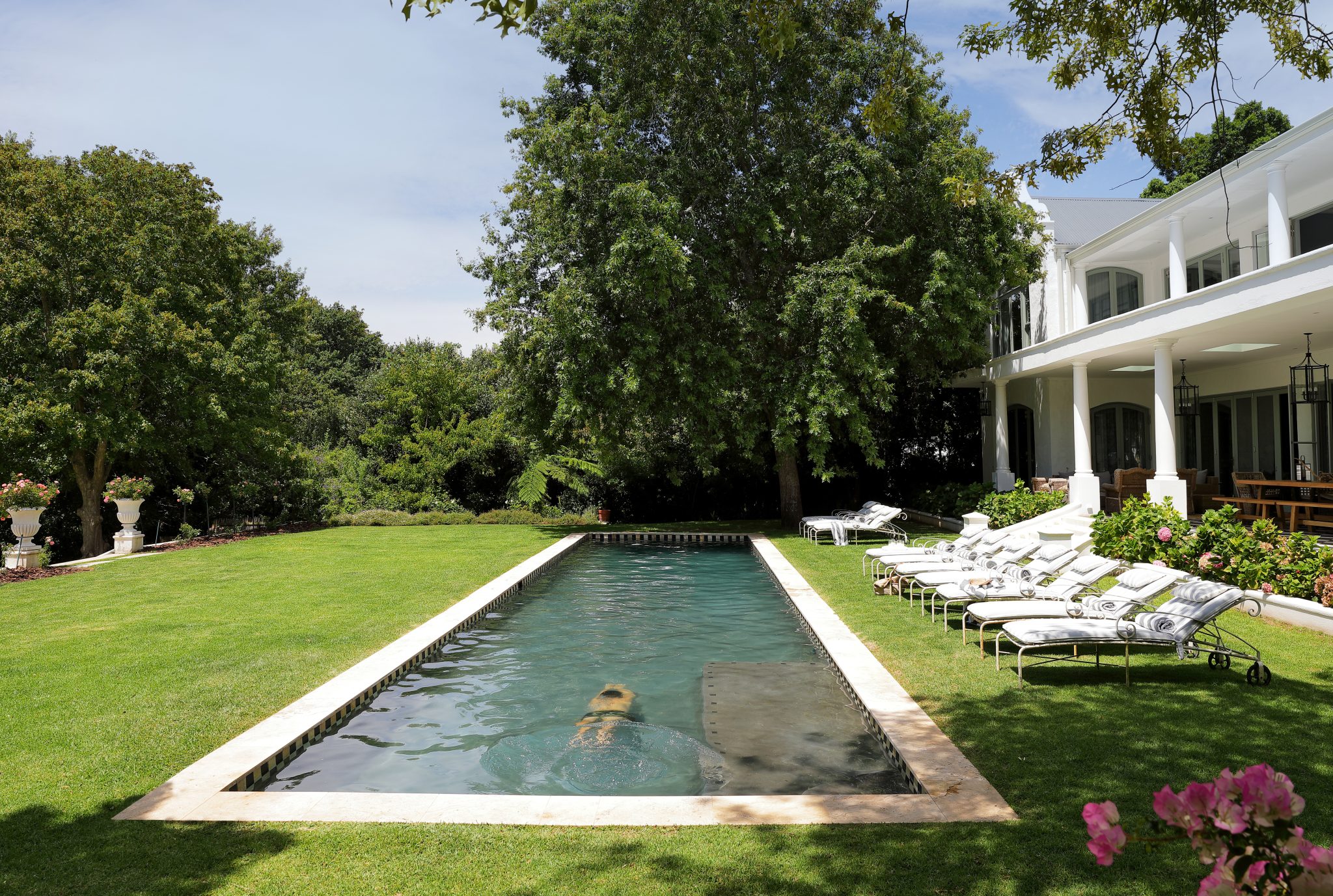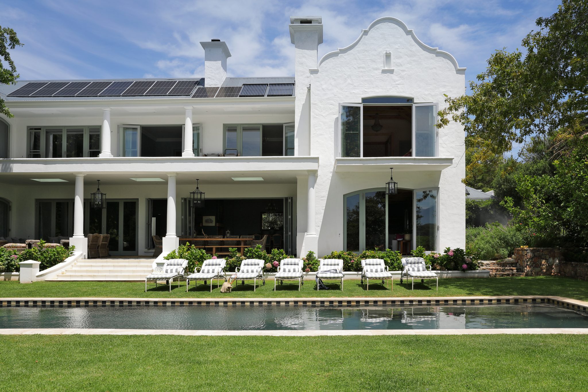 The Manor House forms part of an exclusive estate that includes several beautifully appointed accommodation options, each designed to function independently while sharing access to the estate’s manicured gardens and large swimming pool. Guests enjoy total privacy, modern comforts and seamless security, with direct access into the historic Groot Constantia Vineyards.
