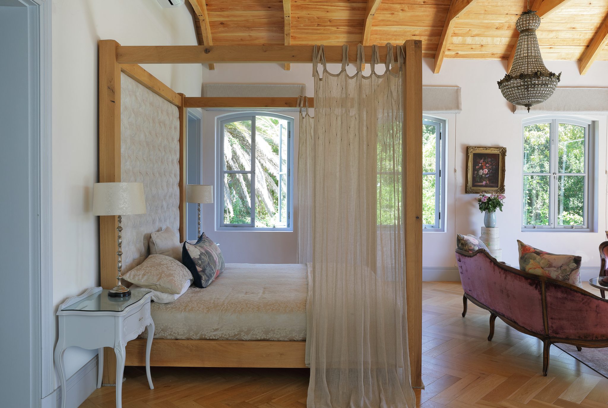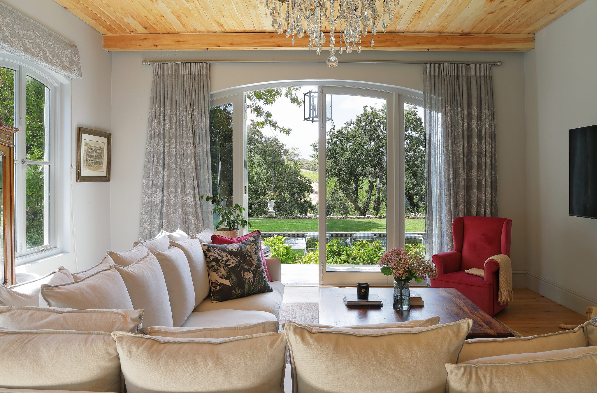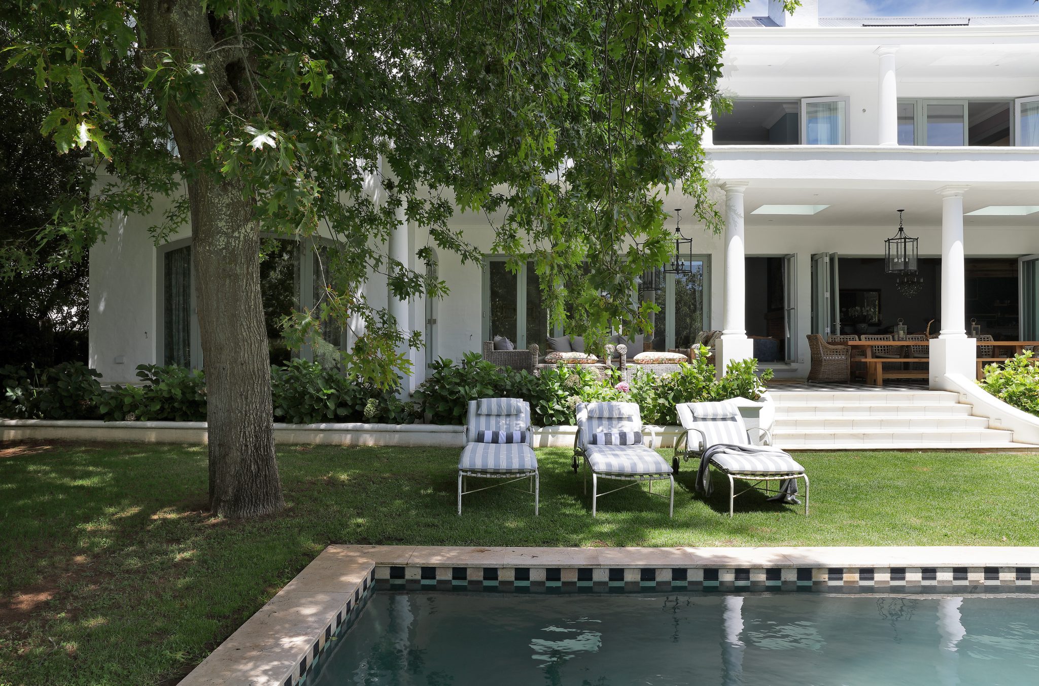The Manor House forms part of an exclusive estate that includes several beautifully appointed accommodation options, each designed to function independently while sharing access to the estate’s manicured gardens and large swimming pool. Guests enjoy total privacy, modern comforts and seamless security, with direct access into the historic Groot Constantia Vineyards.