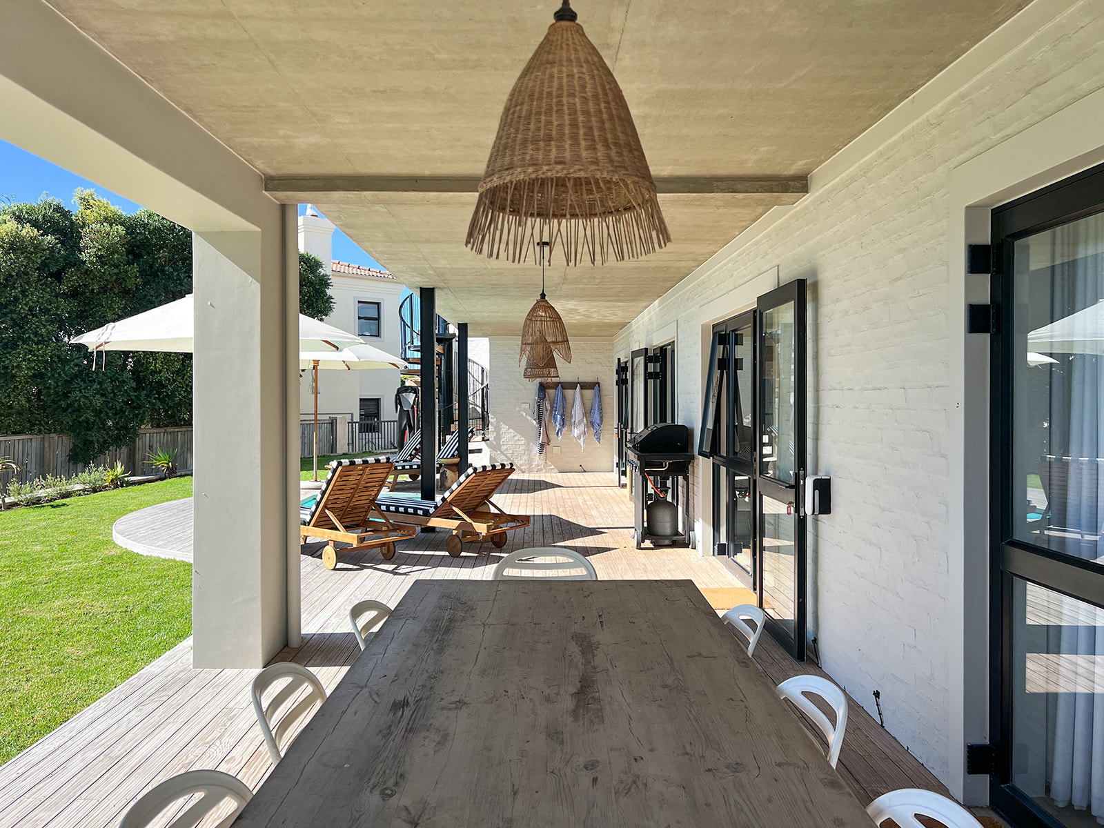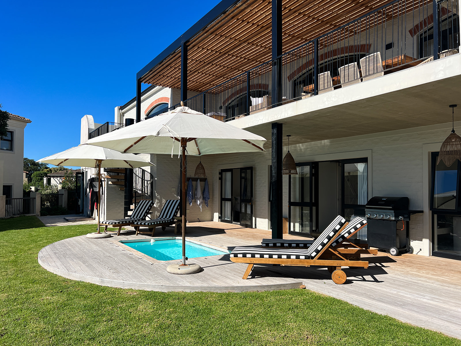 The quintessential South African summer holiday home. This well designed home is light and airy, offering great spaces for to unwind from a day at the beach. An ideal located for surfers and families, the house is in walking distance of the famous Bruce’s Beauties and Hulletts surf spots.