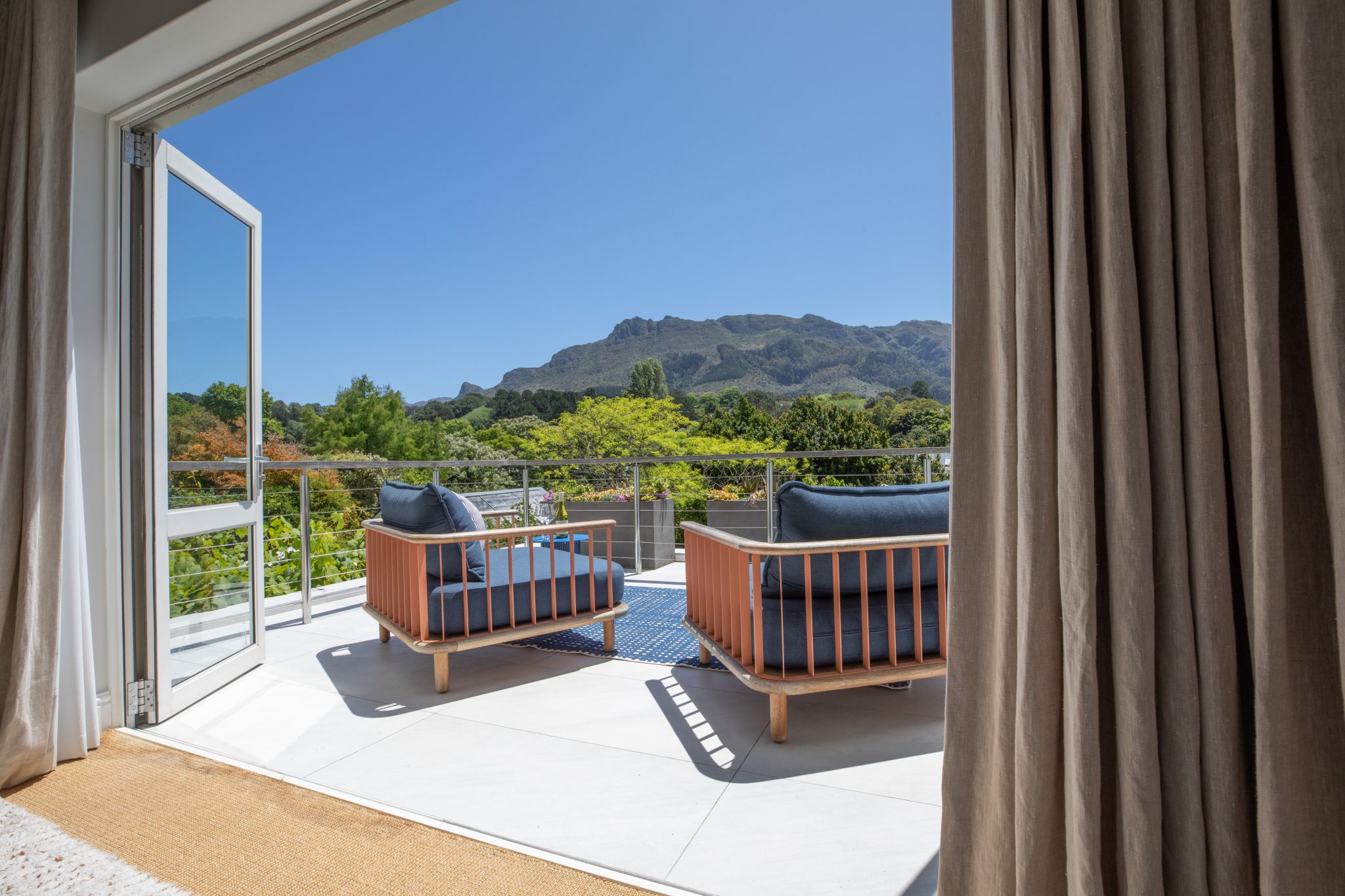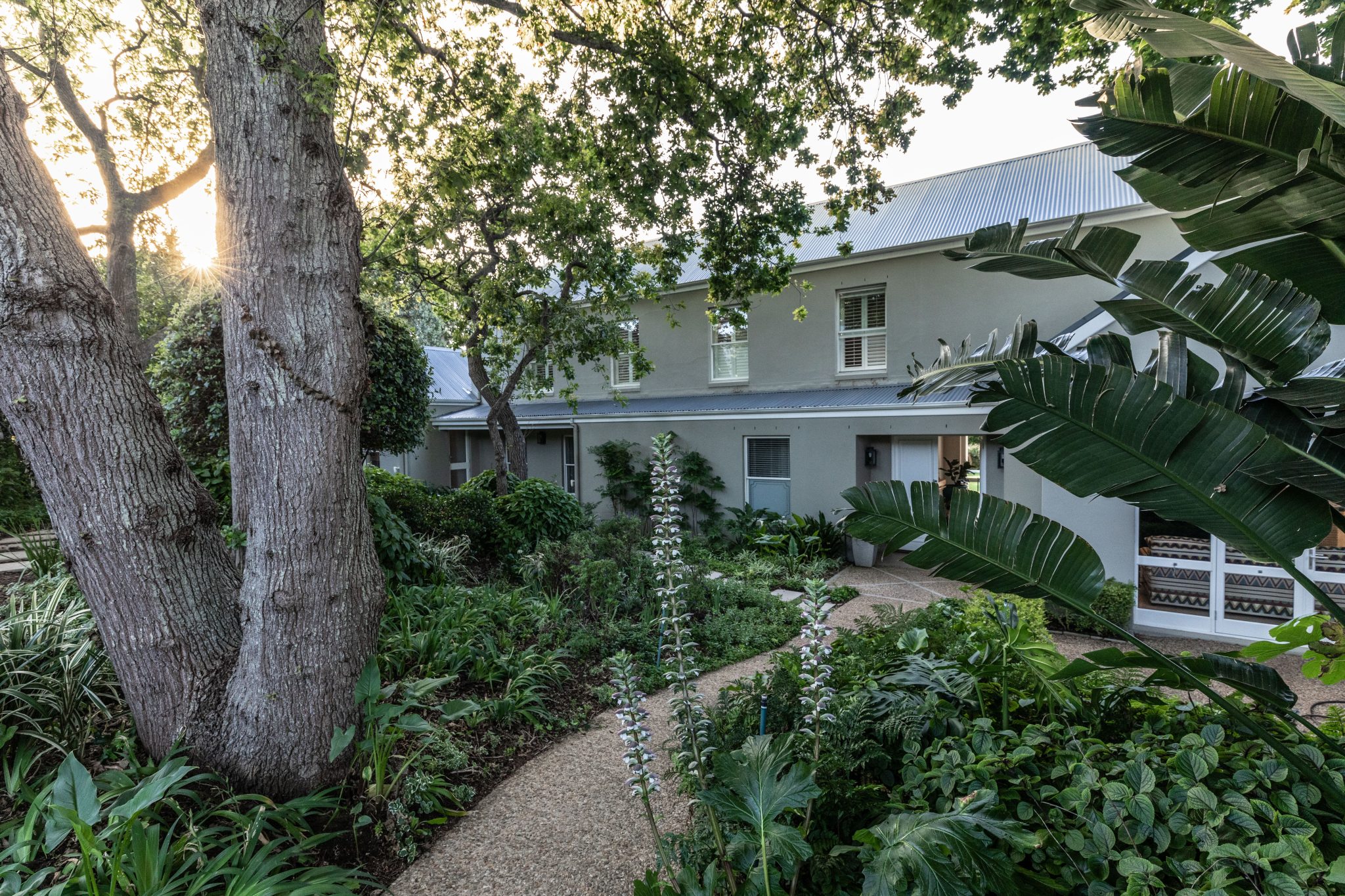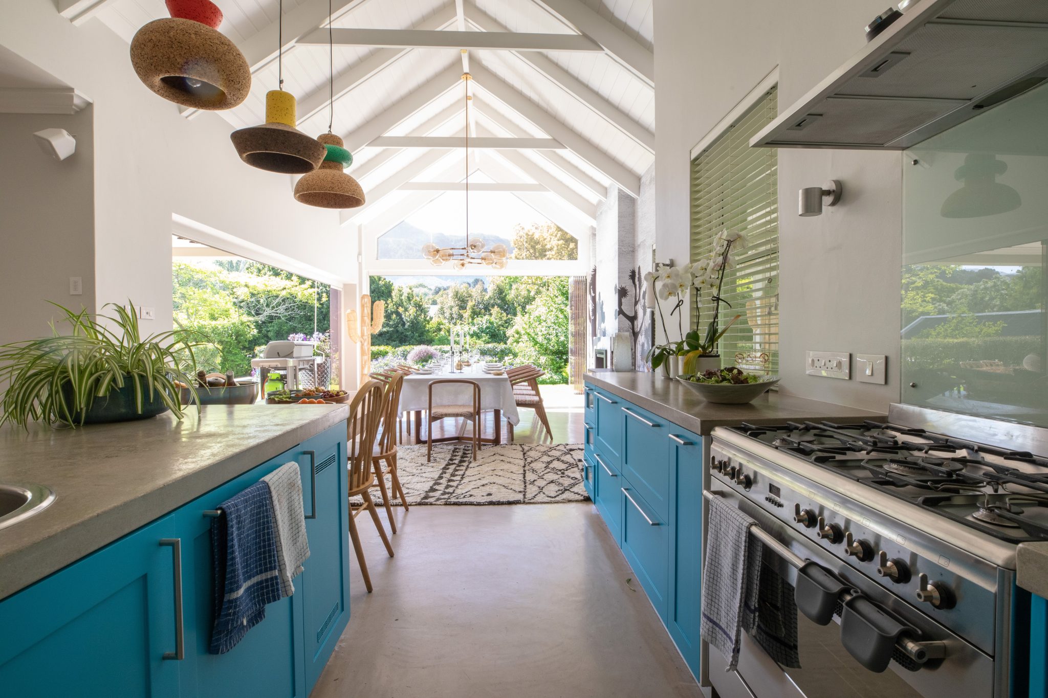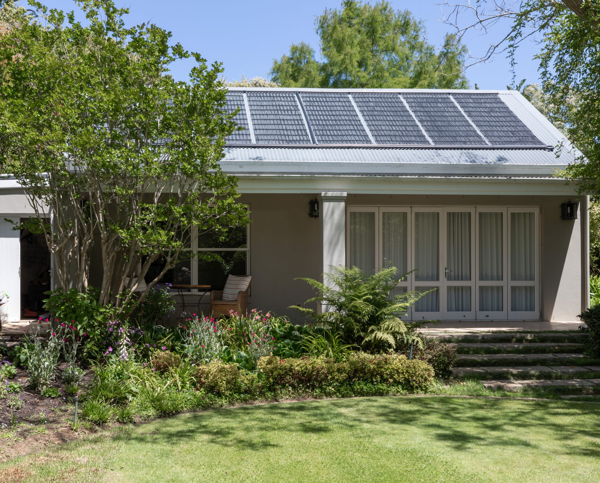Stylish contemporary interiors and beautiful indoor/outdoor flow creates a seamlessly comfortable and easy space. A covered verandah – with lounge and outdoor dining zones (complete with braai and fireplace) – leading onto a lush garden and inviting pool is where you’ll want to set up camp all day.