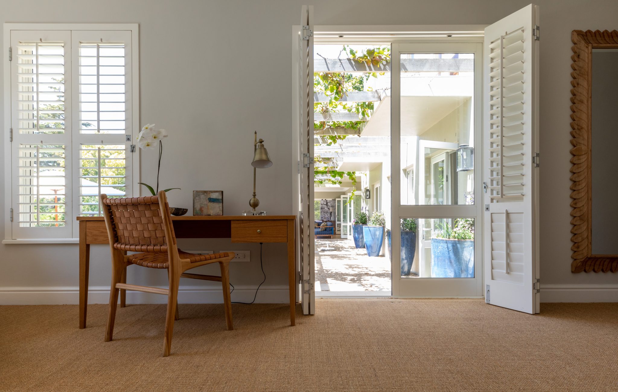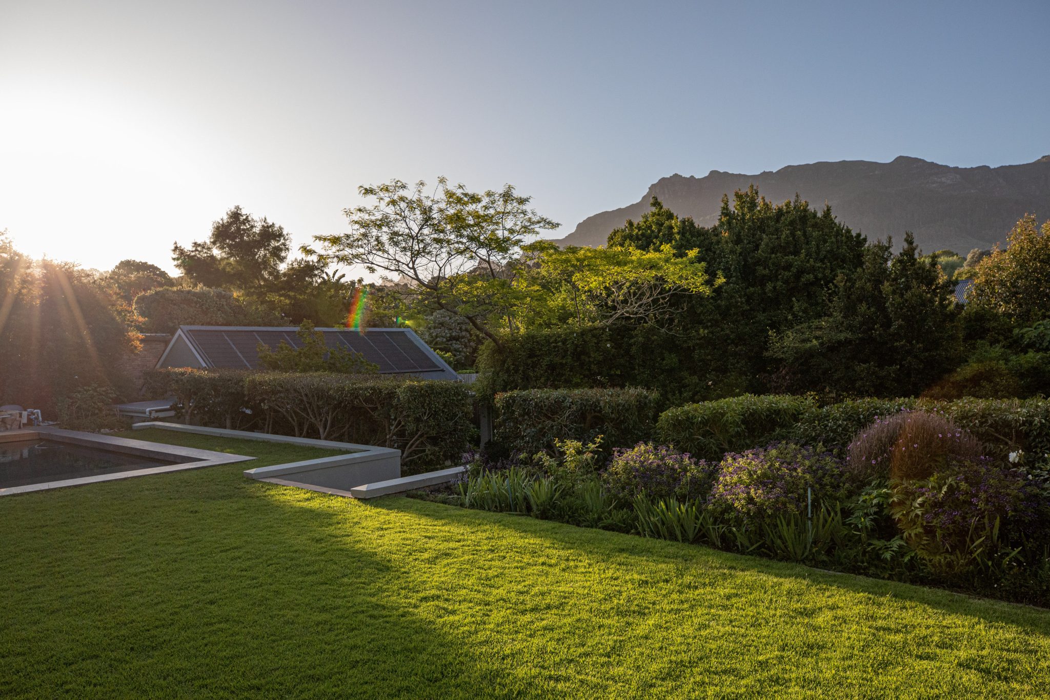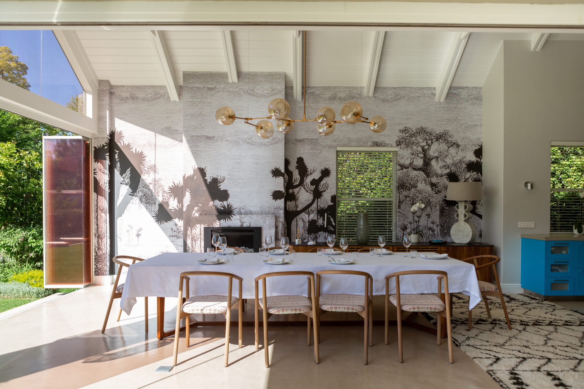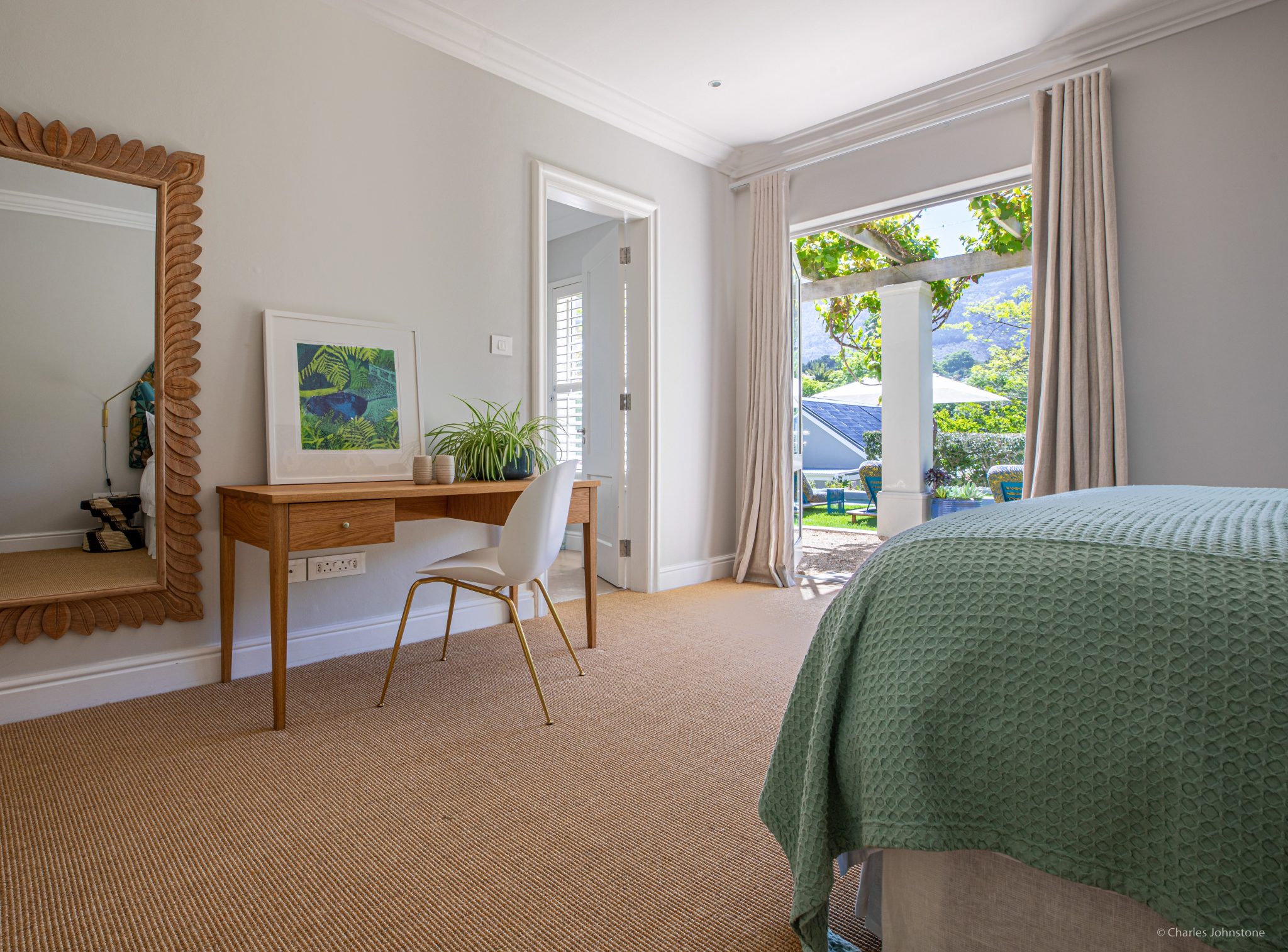 Stylish contemporary interiors and beautiful indoor/outdoor flow creates a seamlessly comfortable and easy space. A covered verandah – with lounge and outdoor dining zones (complete with braai and fireplace) – leading onto a lush garden and inviting pool is where you’ll want to set up camp all day.