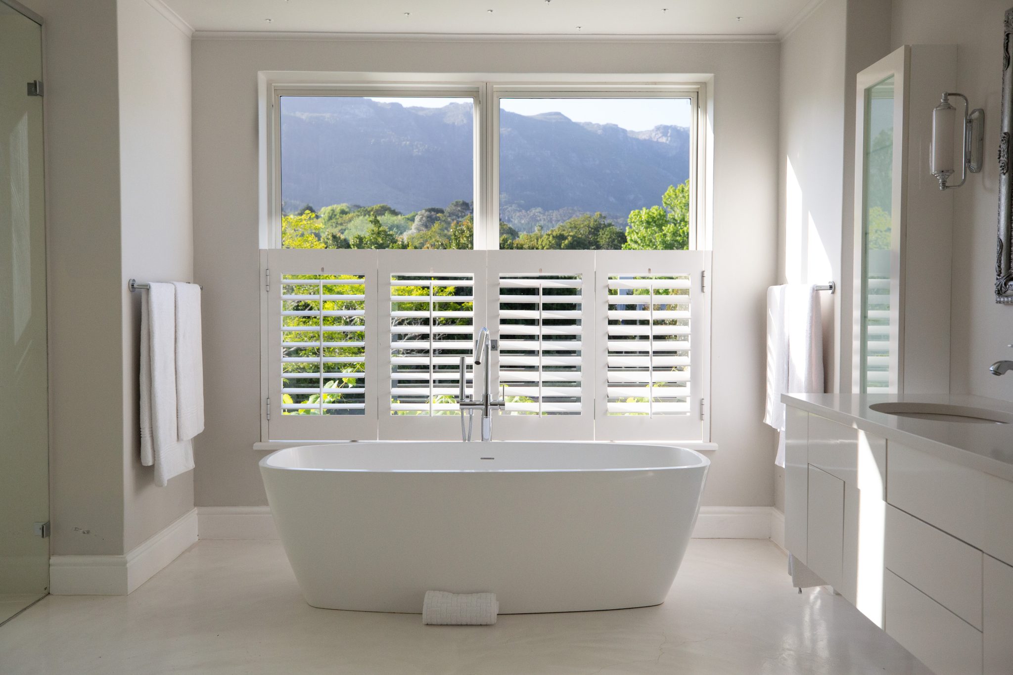 There are four en-suite bedrooms plus a fifth bedroom with two bunk beds, ideal for children. Stunning views from every angle – and the bathtub!