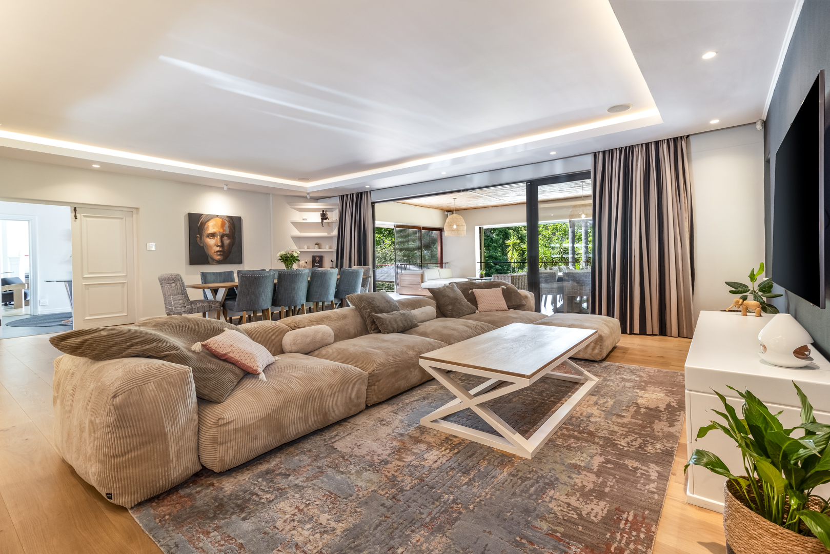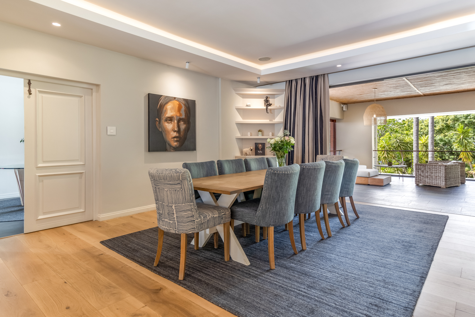 Perfectly blending tranquility with convenience, this home offers an unparalleled retreat in one of the most sough after locations in the Southern Suburbs. Designed with both luxury and comfort in mind, three of the five bedrooms boast stylish en-suite bathrooms with the remaining 2 sharing an elegant full bathroom. Fitness enthusiasts will appreciate the full-equipped gym downstairs.
