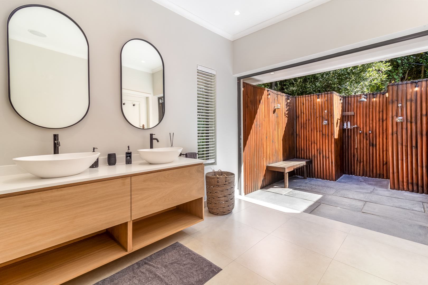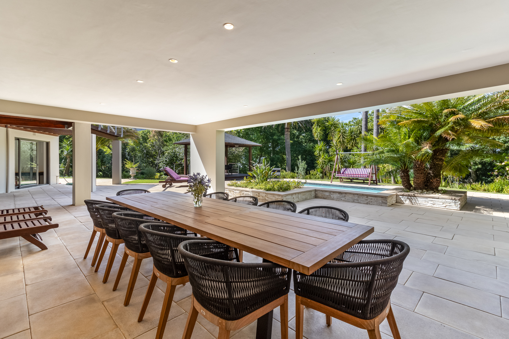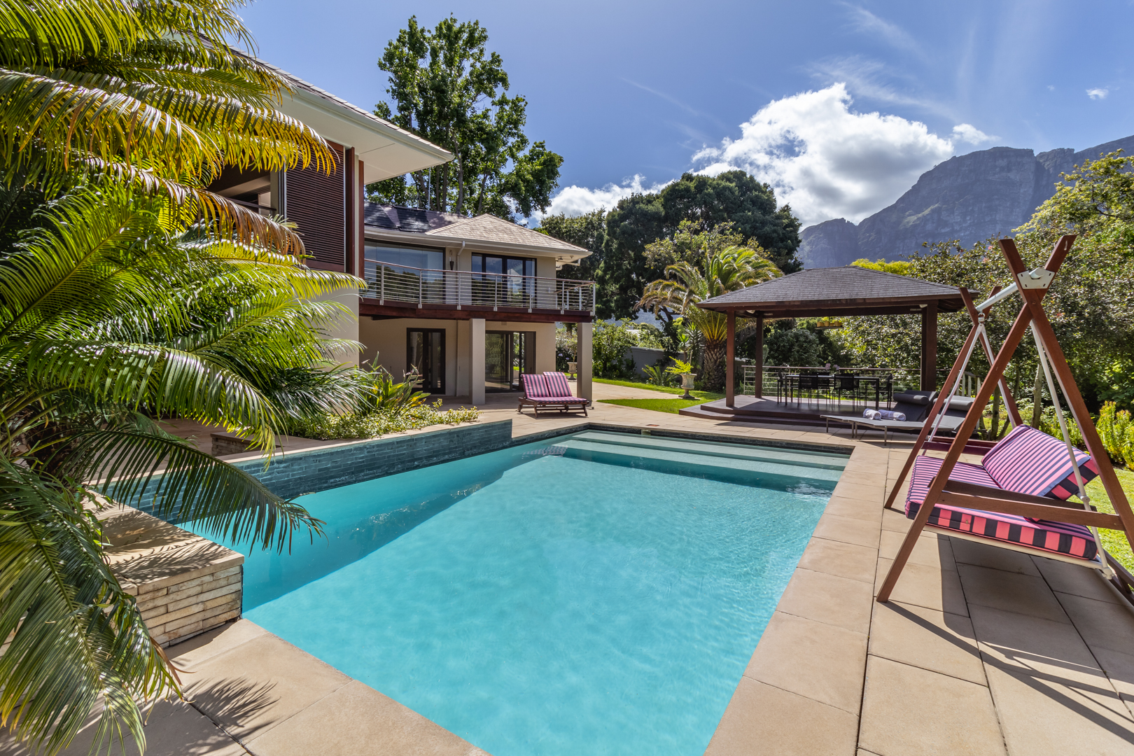 Unwind in the swimming pool, perfectly surrounded by an expansive garden, set against the back drop of Table Mountain. There is also a fire pit, 2 barbecue areas and several entertainment areas in which to socialise or relax.