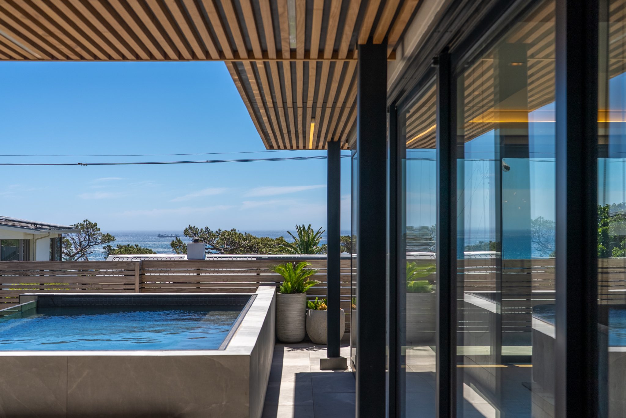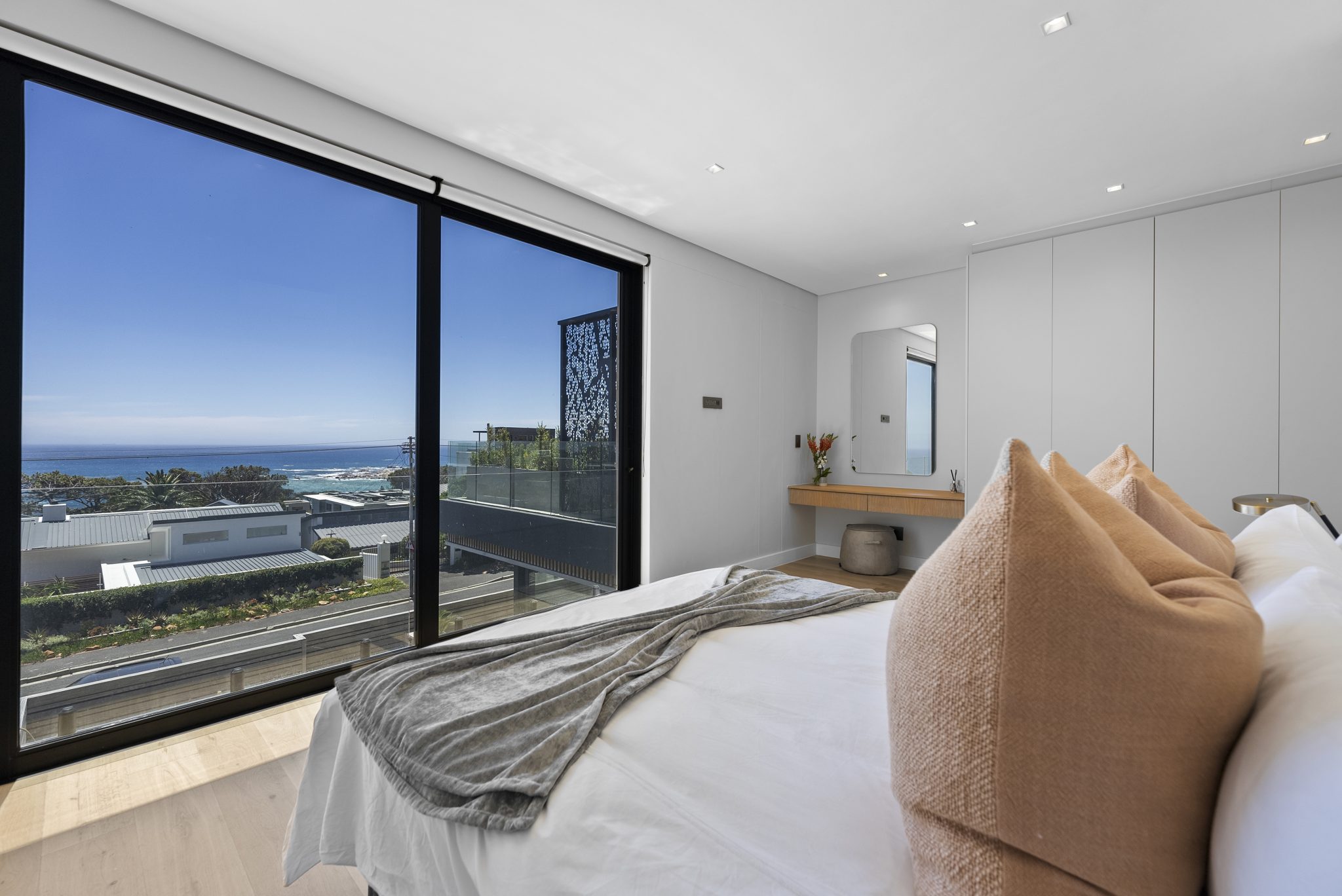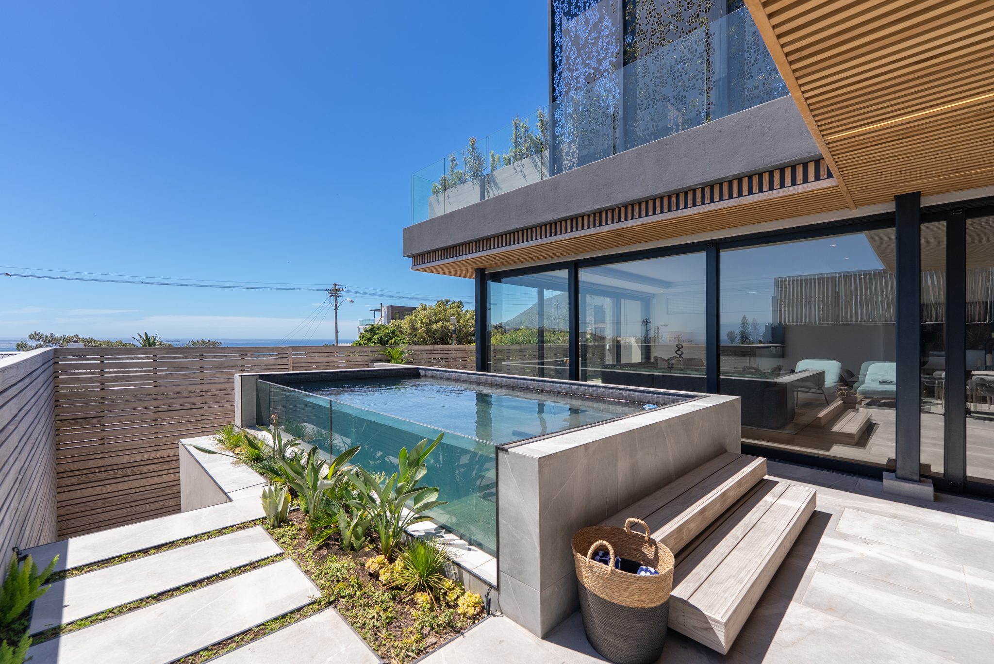 Zola Montemare is a contemporary and chic 4-bedroom villa with a position overlooking Camps Bay and out towards Lion’s Head.