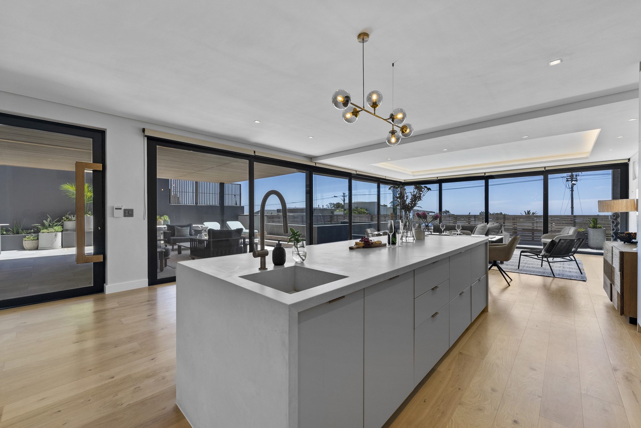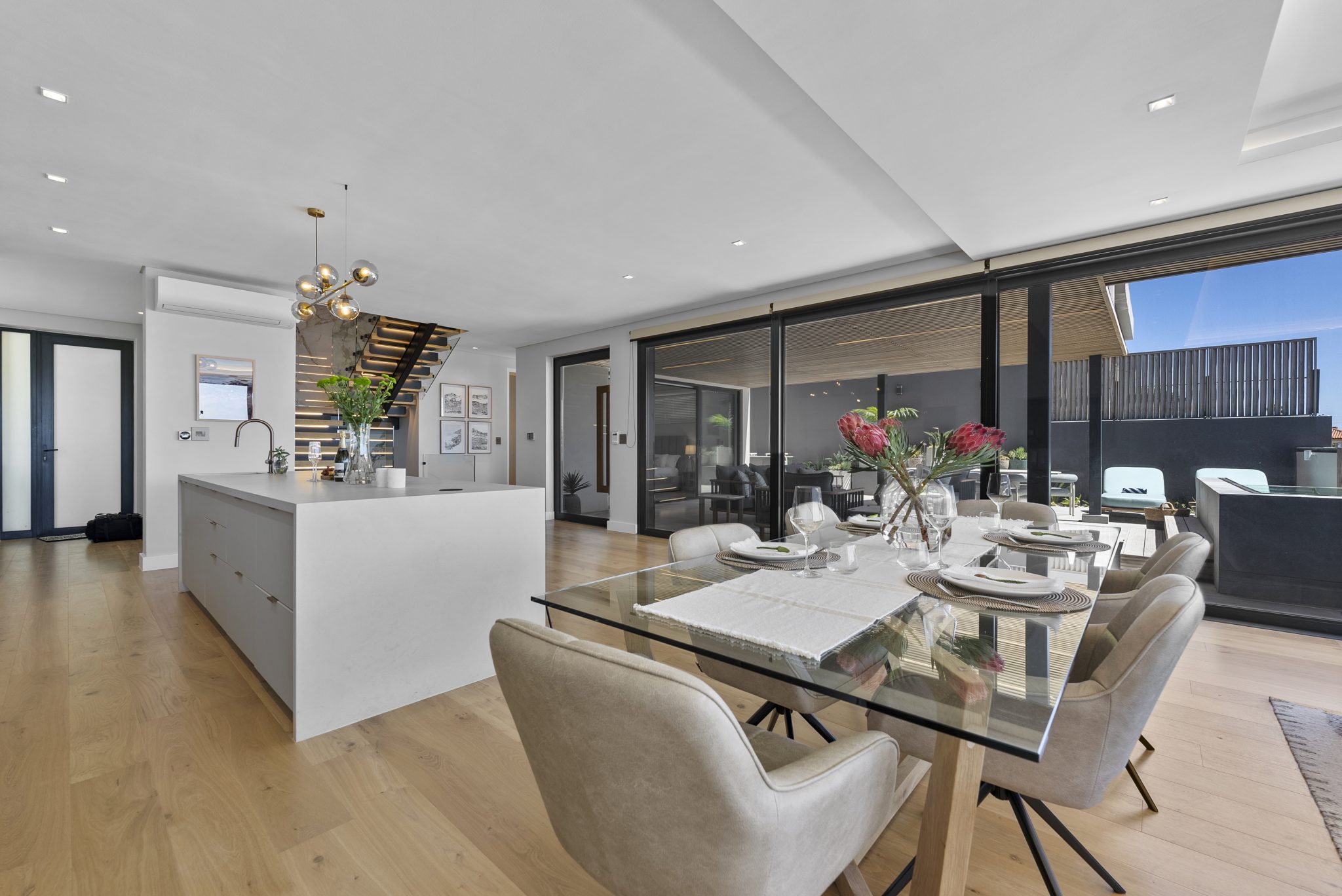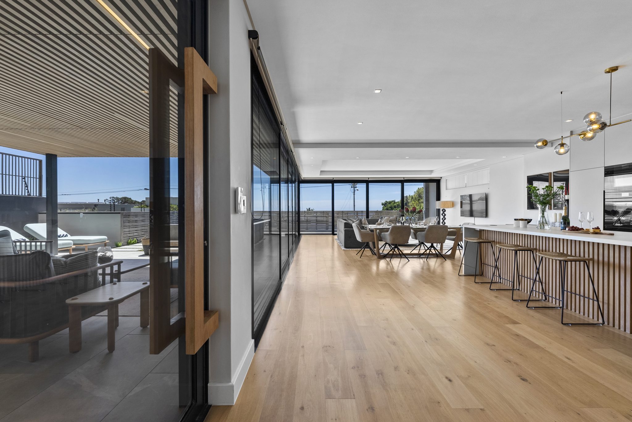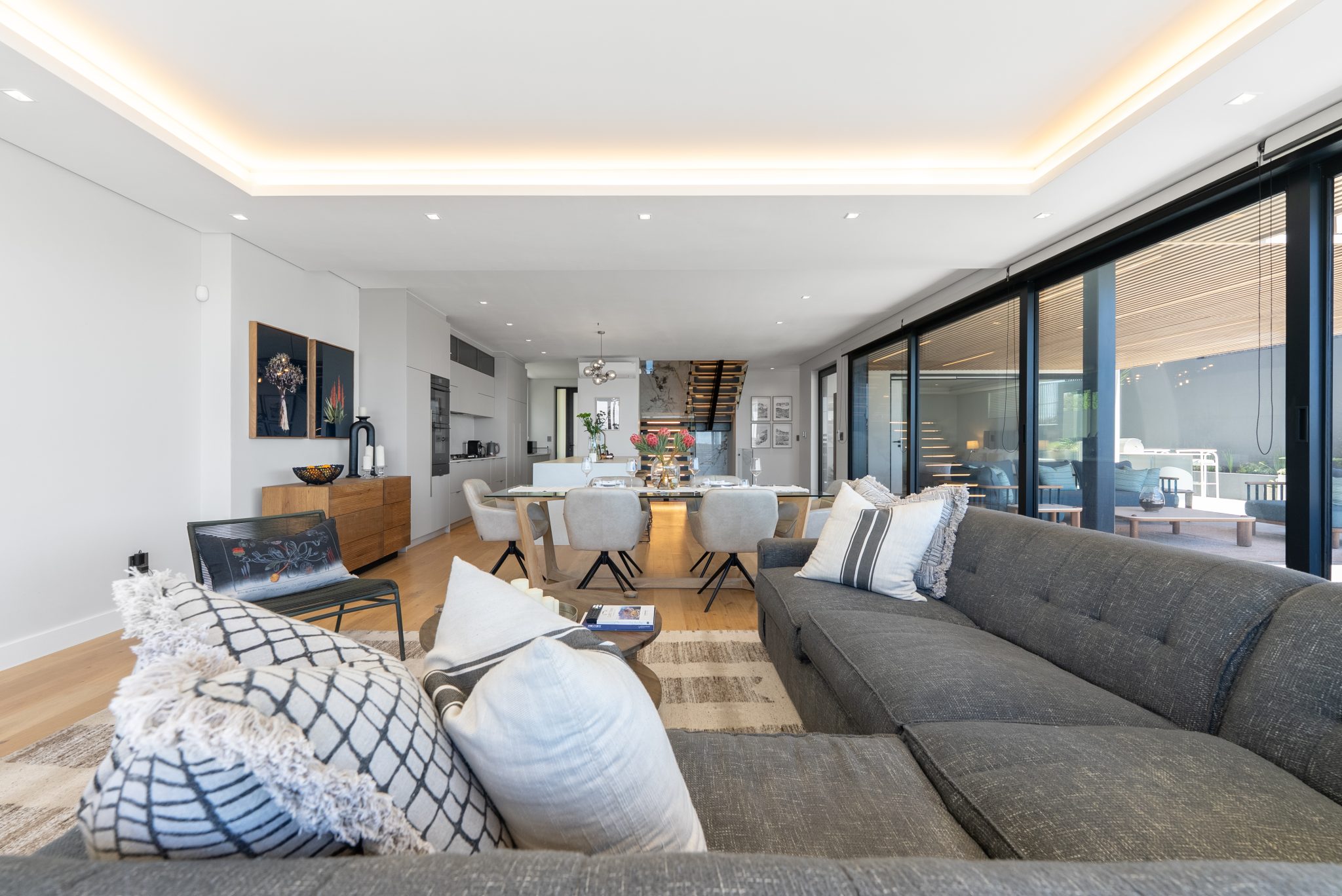 Opens onto the stylish outdoor living area and pool